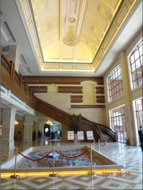 武漢新天地:傳承了上海新天地古俗和民融的商業氛圍和形態,先行啟動商業區,聚攏人氣和品牌,全開放的商業布局,獨棟式的單體商業與街面商業融合,確實獨樹一幟;金地·瀾菲溪岸:讓人一改對金地置業在高端住宅項目打造不夠深刻的印象,此項目可謂傾全力而筑,造價兩億的銷售部及會所,手工涂繪的頂面油畫和地面馬賽克圖騰,恢宏球面投影,林蔭掩映下的別墅及洋房樣板區,六湖貫通的活水系及濕地公園,極富創意的產品設計,都給人以流連忘返的震撼之感;華潤·橡樹灣:一脈相承的代表作品,學院派濃郁的展示區及商業區,標志性的拱門連廊,對景觀和導示等的極致雕琢,讓這個已經蜚聲國內的作品再次驚鴻綻放于此。此外還有很多,比如新奇里面造型的漢宮一號,萬達高端大宅作品萬達公館,在工藝展示、樣板間展示、商業街區包裝、售樓部內外風格多變上做的堪稱教科書的融科·天城,也都給我們提供了寶貴的參考價值,可謂不虛此行。