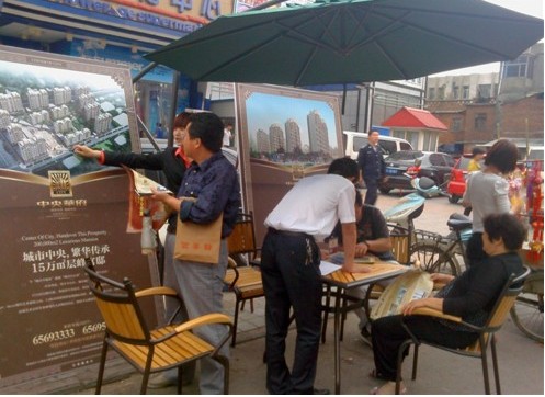 隨著“中央華府”項目拆遷工作的進一步突破,我們的銷售工作也開始被一步步提上日程。從上個月做的前期市場調查問卷,到現在在街頭鬧市開展的巡展活動,各種宣傳都依次展開../../../../../../../../../../../../../../../..../../../../../../../../../../../../../../../..../../../../../../../../../../../../../../../..