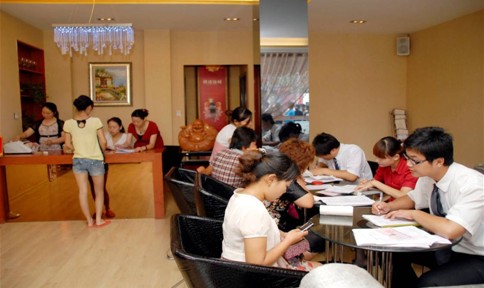 公司前來支援的同事在幫助我們為客戶辦理認籌手續!