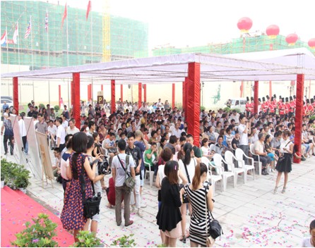 上午八點,開盤儀式正式啟動,舞獅、軍樂隊演奏等一系列活動再一次把休息區(qū)客戶們的心情引向高漲,最終,啟動儀式在一聲脆響的擊鑼響聲中宣告結束,客戶們按照認籌順序依次進入等候區(qū),準備選房。