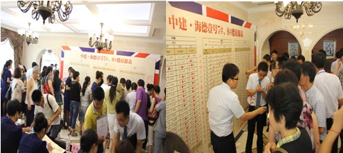 客戶們憑著手中拿到的號牌在工作人們的引導下,秩序井然的進入等候區(qū),選定座位后,不時地和周圍一起選房的人交流彼此的看法和意見,為隨后的選房做更充分的考慮。