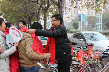 在市區共設立五個派發小分隊,分別在人群比較集中的地點如:南航盛德美、鳳凰城、天橋等繁華商圈以及火車站、汽車站等人流量較大地點。藏瓏項目的兄弟姐妹們,把一條條代表溫暖的紅圍巾戴給廣大市民,成為這個城市一道亮麗的風景線。