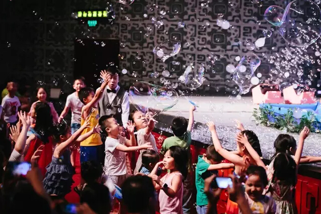 7月31日傍晚,魔幻3D泡泡秀,在保利劇院華彩上演。鄭州碧桂園VIP客戶憑票有序進入內場,家長和小朋友迫不及待等待開場。