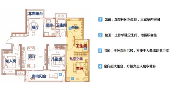 星河灣四房結合三代同堂或二胎時代的居住習慣,戶型內部功能區(qū)齊全,通過合理布局實現動靜分區(qū),給每個人獨立的放松空間,同一屋檐下,相處沒摩擦。