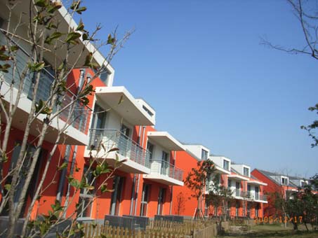 在內地很少見的紅色立面,黃色與紅色的大膽運用,鮮明跳躍而不失和諧小鎮內的水系德國風情小鎮的多層立面兩棟樓之間的玻璃連廊,使居民間擁有更多的溝通和交流一幢紅色大樓安靜的坐落在草坪旁,斜坡頂上一扇扇天窗仿佛眼睛,讓整棟樓都變得豁然、純凈而靈動小鎮內單元組團的入口可以踩在腳下的沙盤,哈哈,夠大,有點沙場點兵的意思小鎮內的水景道路連拼小墅www.wsd-clock.com尚正行提供